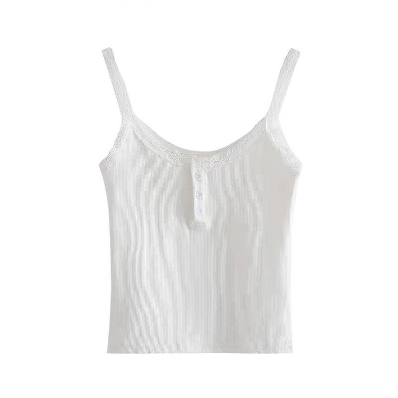 Styled with a fresh and sweet aesthetic, this vest features delicate splicing details and double-joint shoulder straps, giving it a refined and feminine look. Perfect to wear alone or layer under shirts, jackets, or cardigans for versatile styling.